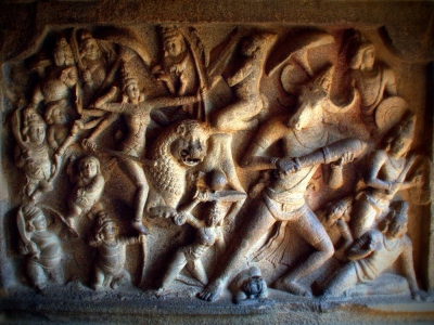 Varaha Cave Temple, an example of Indian rock-cut architecture dating from the late 7th century, is a rock-cut cave temple located at Mamallapuram, is a finest testimonial of anciest Vishwakarma Sthapathis, a tiny village south of Chennai in the state of Tamil Nadu, India. Part of the Group of Monuments at Mahabalipuram, the temple is a UNESCO World Heritage Site.
